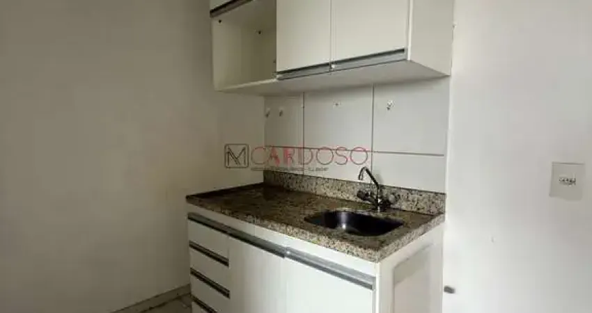 Apartamento composto por 1 quarto, sala, cozinha com armários e banheiro social.