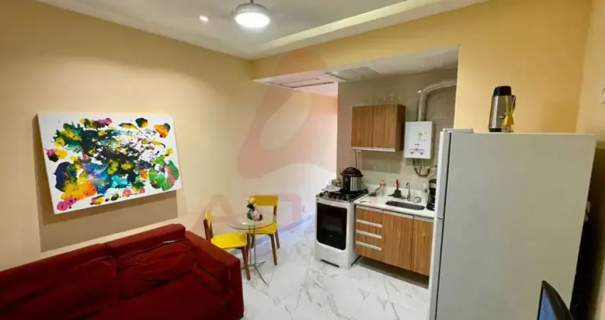 O apartamento possui 35 m² de área total e 35 m² de área útil, proporcionando um ambiente aconchegante e prático. O condomínio conta com infraestrutura básica, incluindo interfone, portaria, circuito de TV a cabo, câmeras de vigilância e porteiro 24 horas.
