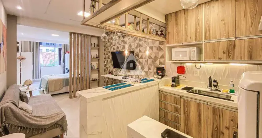 Excelente Conjugadão dividido em saleta quarto bem amplo, claro e arejado com vista livre para a rua Silva Castro, todo modernizado, cozinha integrada, mobiliado, pronto para morar e para investir.