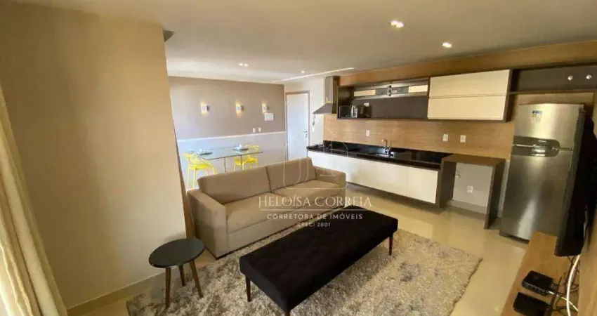 Apartamento mobiliado de 60m², 01 suíte, sala, cozinha e varanda.