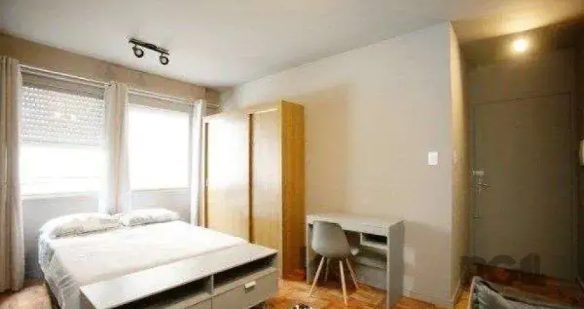 Ótimo apartamento JK no Menino Deus, mobiliado, reformado, com 30m² privativos. Possui sala/dormitório amplo, banheiro com box de vidro e ventilação natural, cozinha americana e área de serviço separada. Ficam móveis da cozinha, dormitório e banheiro, e Split instalado. Condomínio com interfone, não possui elevador. Estacionamento próximo para locação de box. Localizado em ótima região próximo da Rótula do Papa, a poucos minutos do Hospital Mãe de deus, do Zaffari, do Parque Marinha do Brasil, fácil acesso ao Centro, com todos os recursos próximos. Aceita financiamento. Agende já uma visita.