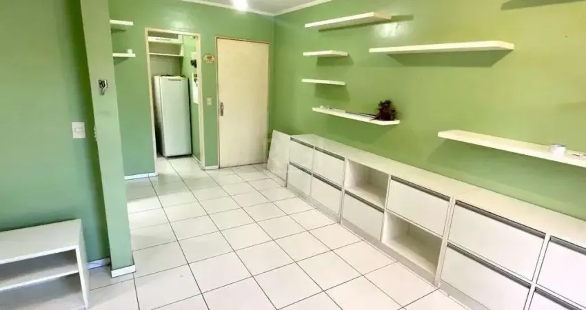Apartamento de frente, 01 dormitório integrado com a sala, 1º andar, 1 lance de escada, com banheiro, cozinha, área de serviço, ar condicionado, bem ventilado. Prédio com interfone, zelador.