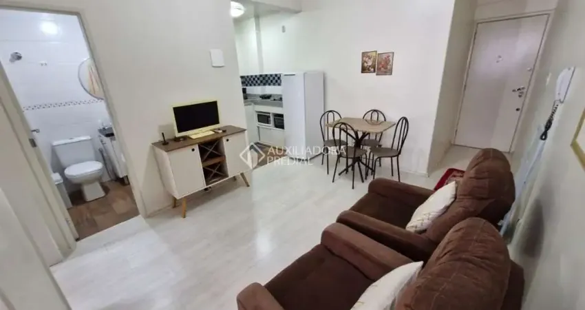 Apartamento todo mobiliado, 1 dormitório com ar condicionado, sala de estar, banheiro social, cozinha planejada.
