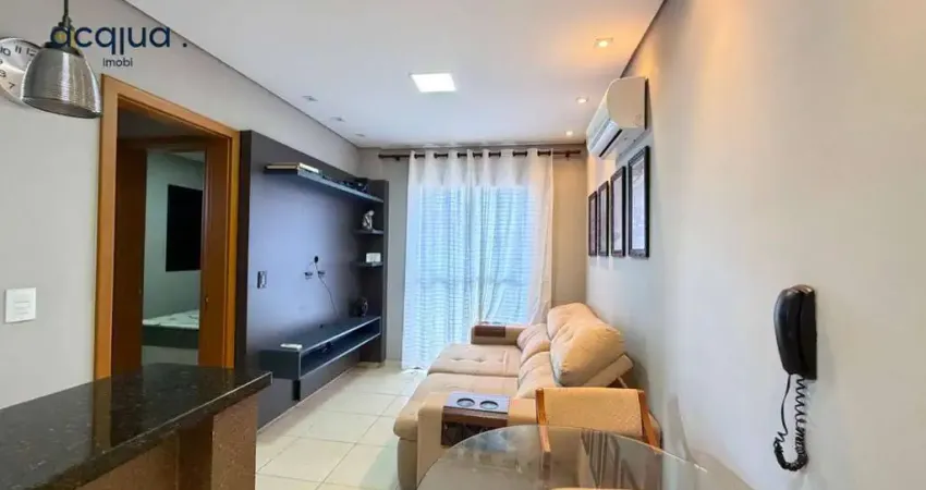 O imóvel conta com 01 dormitório, confortável e bem iluminado, sala integrada, proporcionando um ambiente funcional e agradável, além de sacada, que traz ventilação e iluminação natural. A cozinha é planejada, equipada com armários de qualidade, integrada à lavanderia, garantindo melhor aproveitamento do espaço. O apartamento possui ar-condicionado, oferecendo conforto térmico em todos os ambientes.