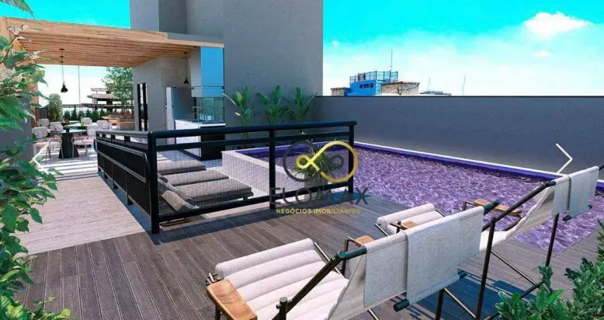 Lazer completo em rooftop com piscina, solarium com jardim e espaço gourmet com vista panorâmica da cidade.