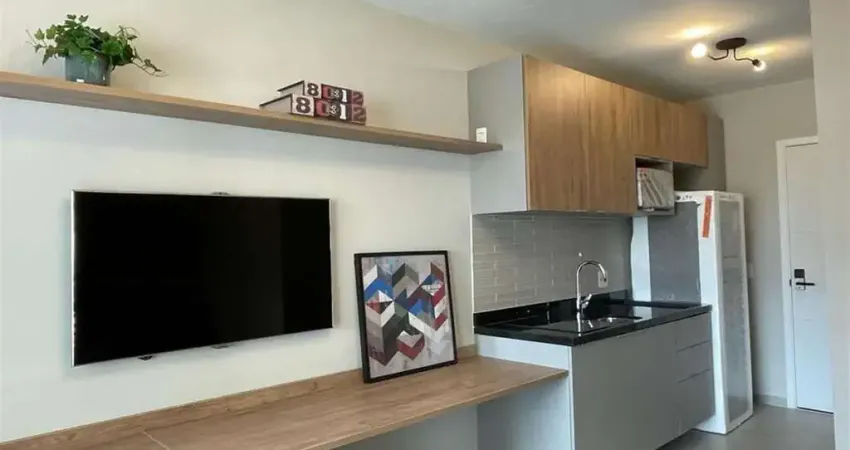 Excelente Studio de 26m , recém entregue, mobiliado com fino acabamento, varanda fechada com vidros, ar condicionado, andar intermediário, de frente. * Não possui vaga *Condomínio academia equipada, coowork, lavanderia coletiva, espaço, portaria (link removido)ção privilegiada, próximo a todos os tipos de comércios, Centros empresariais, meios de transporte, inclusive metro Brooklin, e com fácil acesso a grandes avenidas.