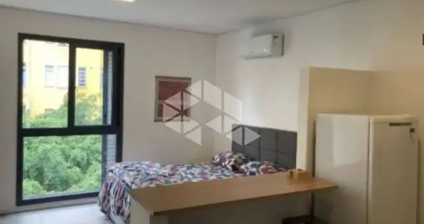 Mobiliado (possui bancada de estudos, ar condicionado, cooktop elétrico, microondas, geladeira, cama box e filtro.