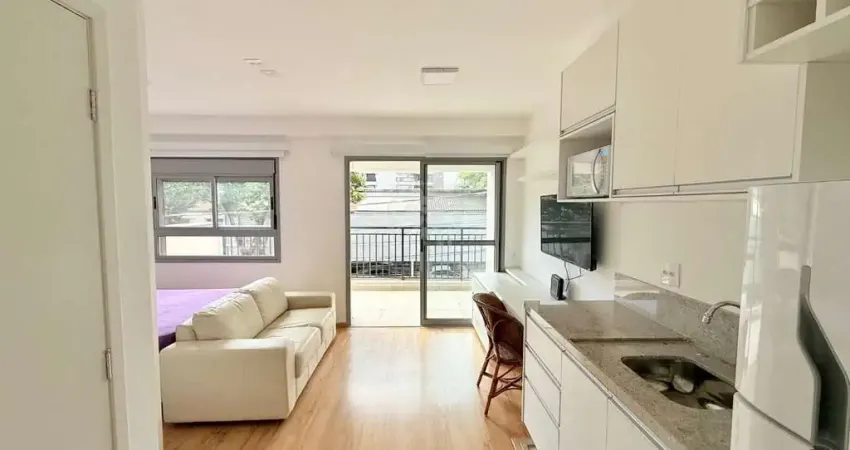 Apartamento mobiliado e decorado - 37 m² com ambientes integrados e varanda