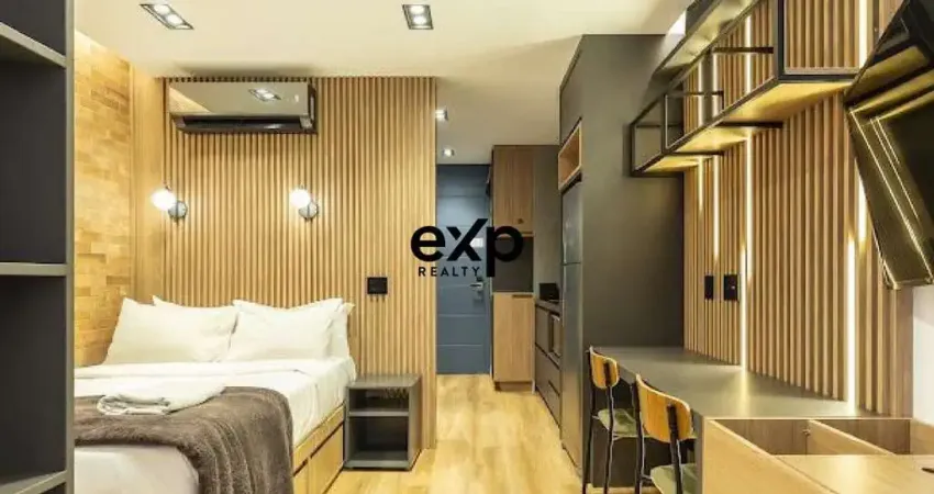 Este studio de 27m² destaca-se pelo projeto de interiores inteligente e acabamentos de alto padrão. A unidade, oferece um ambiente otimizado com marcenaria funcional em todos os espaços, garantindo organização e conforto.