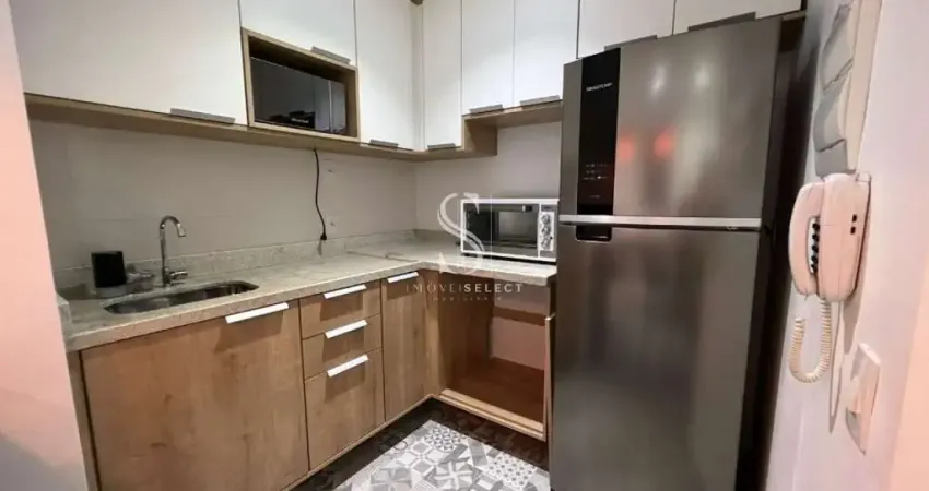Apartamento de 48m², 1 dormitório, 1 sala, 1 cozinha, 1 banheiro, todo mobiliado, sem vaga.