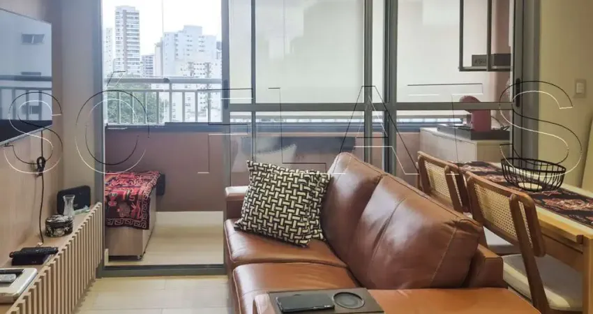 Apartamento mobiliado e equipado com 34m², 1 dormitório suíte, sala para dois ambientes integrada à cozinha americana completa e varanda envidraçada. Planta inteligente, ideal para moradia moderna ou investimento com alta liquidez na Saúde.