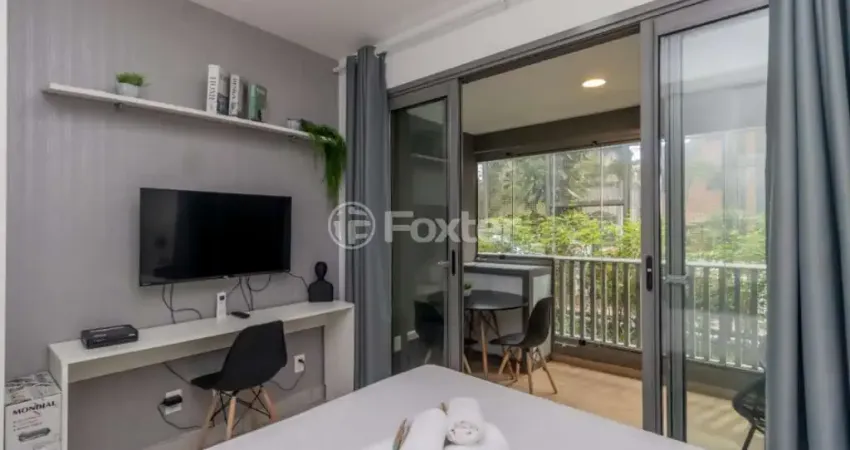 Desfrute de uma variedade de facilidades como piscina, espaço fitness, espaço gourmet, bicicletário, e uma lavanderia comunitária. Para o seu conforto, o estúdio é completamente mobiliado, possui aquecimento elétrico, ar condicionado central, e é acessível a cadeiras de rodas. Adicionalmente, o edifício é equipado com câmeras de segurança e dispõe de um elevador moderno.