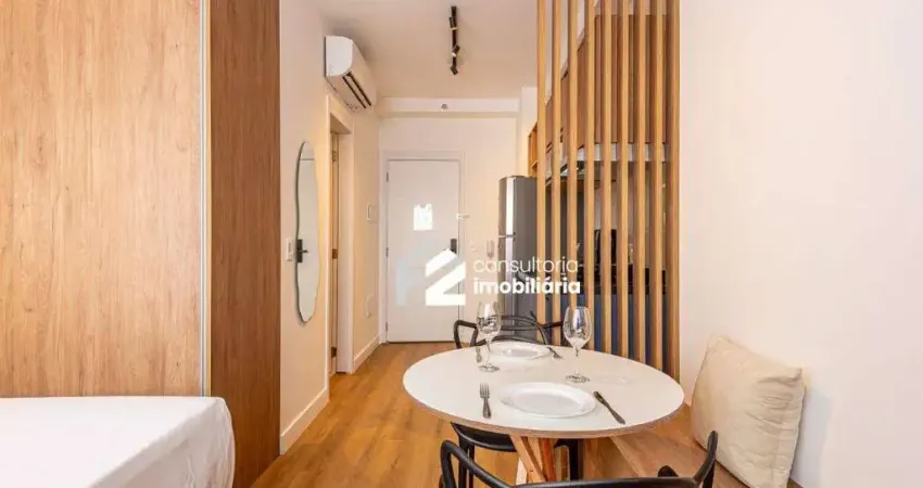 Studio funcional de 24 m², novo, recém-reformado e totalmente mobiliado, pronto para morar ou alugar.