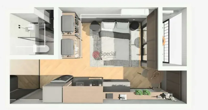 Os studios possuem plantas inteligentes a partir de aproximadamente 23 m², com arquitetura assinada pela Marchi Arquitetura e interiores by Housi, oferecendo ambientes integrados, layouts versáteis e alto padrão de acabamento.