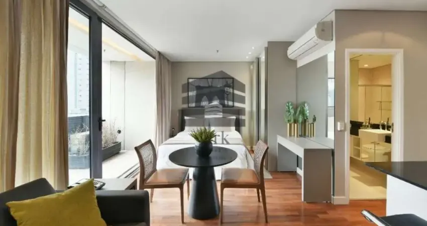 Apartamento na Vila Olímpia 42m², MOBILIADO, equipado, 1 dormitório, 1 banheiro, varanda, cozinha conceito aberto.