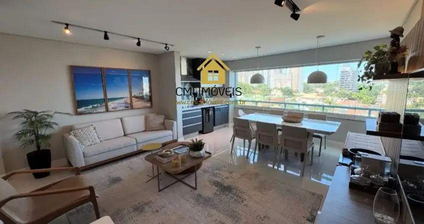 Varanda gourmet com cooktop, churrasqueira elétrica e coifa.