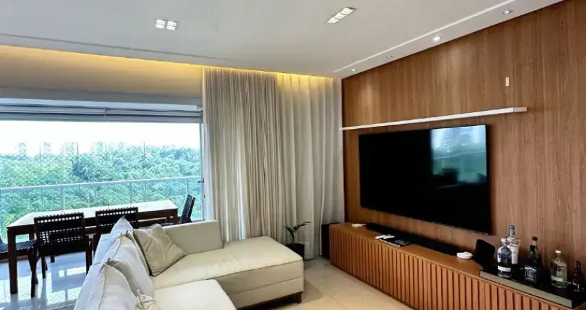 Lindo apartamento com 110m², todo reformado com projeto de iluminação , gesso , móveis planejados em todos os ambientes. O apartamento possui 2 quartos , sendo 1 suíte com closet, home office, lavabo, varanda gourmet com churrasqueira a carvão, 2 vagas de garagem com vista para o bosque.