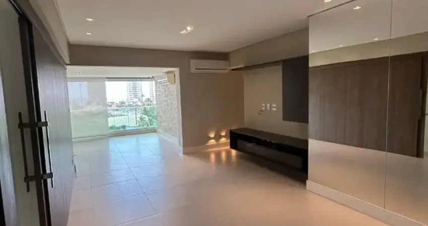 Apartamento com 110m², 3 quartos revertido para 2 quartos com closet, dependência revertida em gabinete, varanda gourmet com fechamento de cortina de vidro, piso porcelanato, armários planejados. Andar intermediário, vista mar, e 2 vags de garagem.