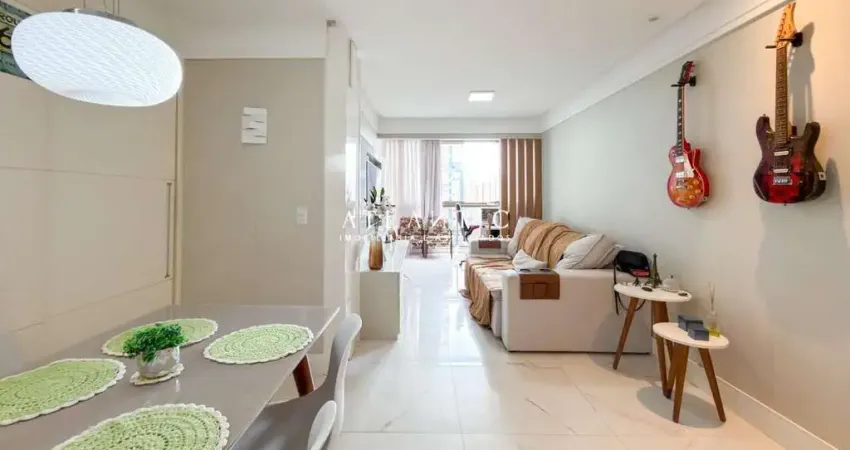 A planta contempla sala de estar, sala de TV, cozinha, área de serviço e uma agradável varanda gourmet, proporcionando ambientes integrados e bem aproveitados. O apartamento possui ar-condicionado, armários planejados, armário na cozinha, forro em gesso, gás encanado, interfone e internet.