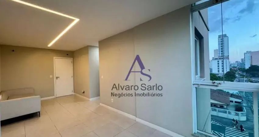 Apartamento de frente, sol da manhã, 5° andar. Armários planejados na cozinha. Varanda com fechamento em cortinas de vidro.
