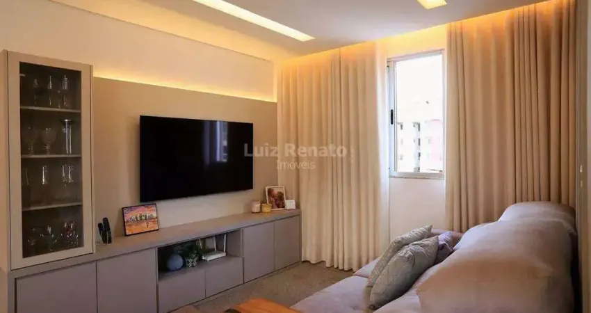 Sala ampla para dois ambientes com iluminação planejada e piso em porcelanato, cozinha integrada com armários planejados e bancada em granito, 02 quartos com armários planejado, piso laminado, projeto de iluminação, sendo 01 suíte com ar condicionado, banheiro social com armário planejado, box e espelho, área de serviços independente com armários.