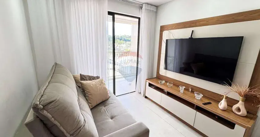 Apartamento de 2 quartos, sala com varanda e fechamento de cortina de vidro, elevador e uma vaga de garagem,