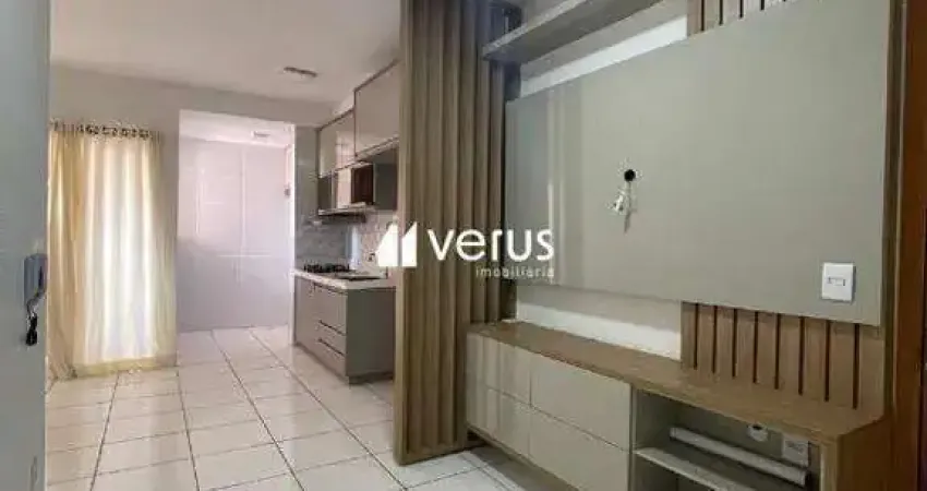 Apartamento com 50m² de área privativa, sala de estar com painel de TV e rack, sacada com boa ventilação, cozinha com armários e cooktop, 2 quartos, sendo uma suíte com painel de TV e rack, banheiro social com armário e box em vidro temperado.