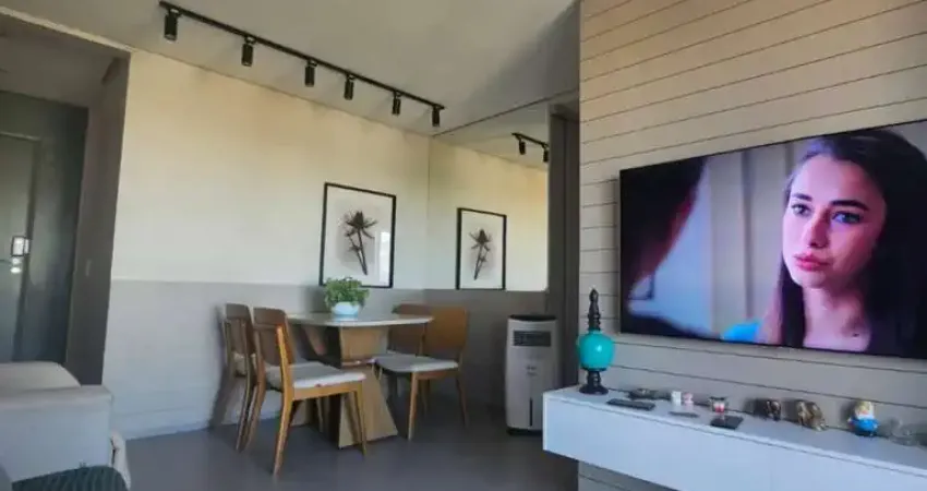 2 quartos com armários, banheiro social, cozinha com armários, cooktop e forno embutido, área de serviço, sala 02 ambientes, 1 vaga de garagem, vista para o praia Clube.