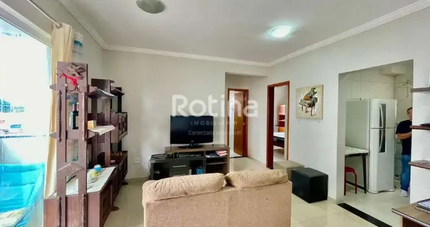 Apartamento de 55m², porteira fechada, com toda a mobília inclusa, em excelente localização a aproximadamente 80 metros da UFU Santa Mônica. Conta com sala em 2 ambientes com ar-condicionado e sacada, 2 quartos com ar-condicionado, sendo um deles com aparelho portátil e 1 suíte, além de banheiro social e banheiro da suíte com box em blindex, cozinha, área de serviço e 1 vaga de garagem. Condomínio sem elevador.