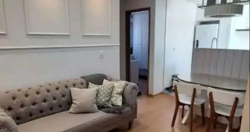 Semi porteira fechada: 2 ar condicionados, 1 geladeira, 1 microondas, 1 cooktop, 1 forno, 1 filtro de água, 1 mesa com duas cadeiras e 1 sofá com puff.