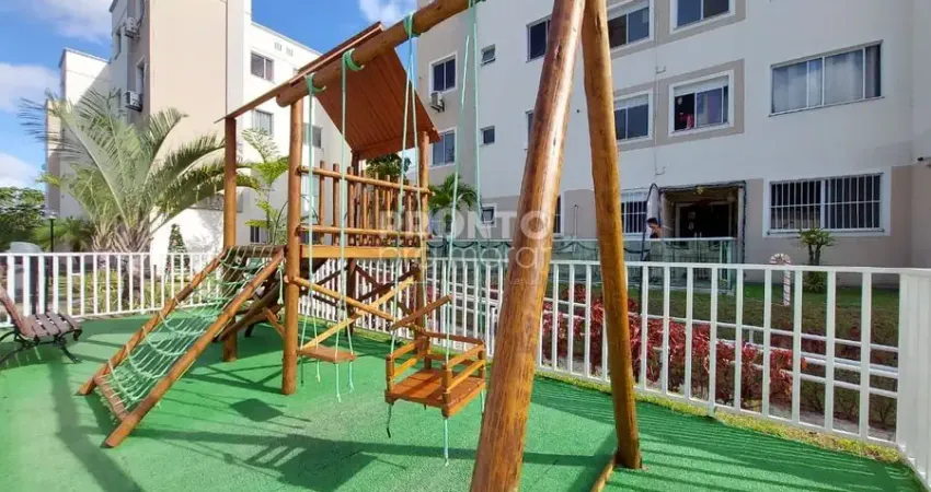 O imóvel possui 45,65m², sala para dois ambientes, dois quartos, wc social, cozinha, área de serviço e uma vaga de garagem.