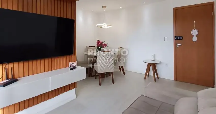 O imóvel possui varanda, sala para dois ambientes, 2 quartos sendo 1 com closet, 1 wc social, cozinha, área de serviço e 1 vaga de garagem.