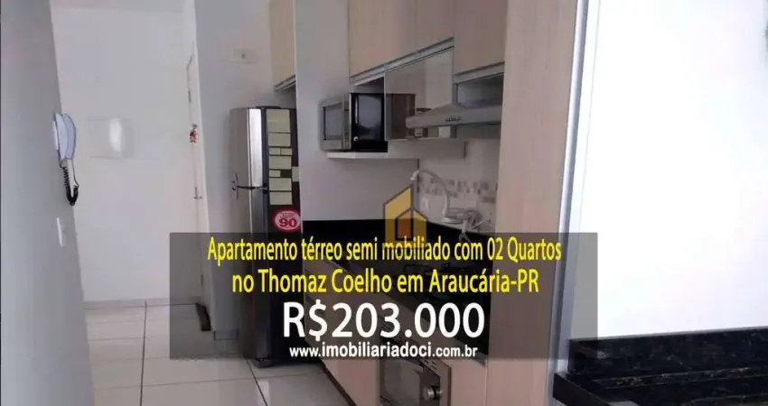 Apartamento térreo semi mobiliado com 02 Quartos no Thomaz Coelho em Araucária-PR