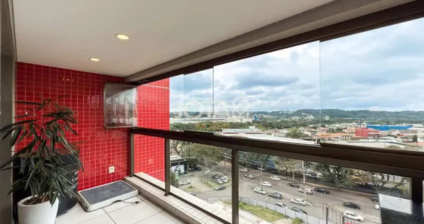 Sala para 2 ambientes com ar condicionado, cozinha integrada, sacada com churrasqueira a carvão e fechamento com sistema reiki, tudo com excelentes móveis fixos, e a praticidade de ficar todo mobiliado!