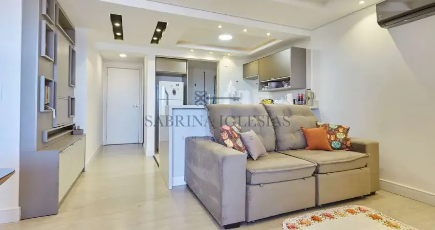 Um charme de apartamento ensolarado pelo sol da manhã, com sacada envidraçada com sistema Reiki e churrasqueira a carvão.