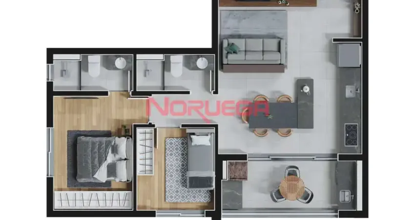 Com 2 quartos, sendo 1 suíte, sala ampla para 2 ambientes, 1 banheiro, cozinha, sacada com área de serviço e churrasqueira, este apartamento é perfeito para quem busca um espaço aconchegante e funcional para viver momentos especiais com a família e amigos.