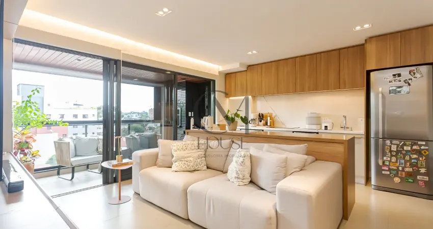 São 74,89 m² privativos, com sala de estar e jantar climatizadas, integradas à cozinha em conceito aberto, proporcionando conforto e funcionalidade.