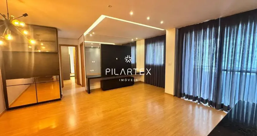 O Apartamento Possui 2 Quartos, Sendo 1 Suíte com Ar-Condicionado e Armários Planejados. O Segundo Quarto Possui Armário. A Sala é Estendida, Equipada com Painel para TV, Integrando-se à Sala de Jantar que Conta com um Elegante Bar, Cristaleira e Cortinas no Linho Romano. Cozinha Planejada, com Fogão e Exaustor Instalados. São 2 banheiros com Móveis Sob Medida, Proporcionando Funcionalidade e Organização.