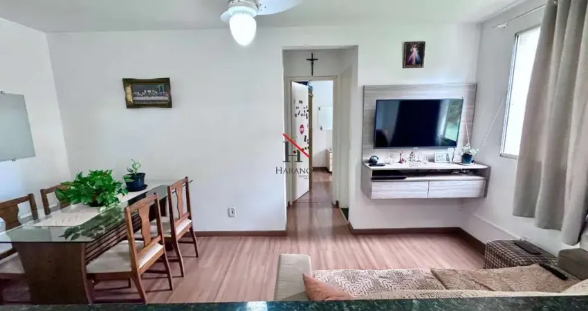Apartamento com 2 quartos, banheiro social, sala 2 ambientes, cozinha, área de serviço e garagem.