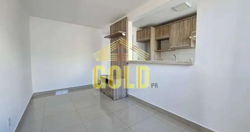 Apartamento para locação em frente a PUC-PR Londrina, contando com 2 dormitórios, 1 banheiro, sala com dois ambientes e 1 vaga de garagem.