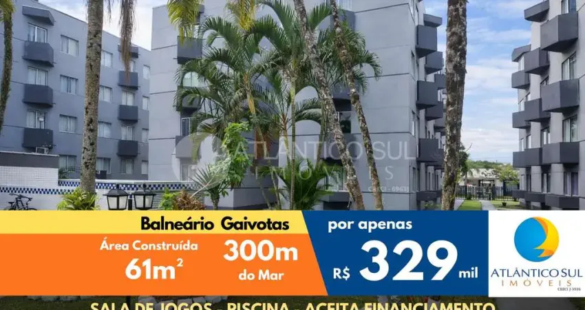 APARTAMENTO COM 2 QUARTOS, PISCINA, 300m DO MAR, GAIVOTAS, MATINHOS - PR
