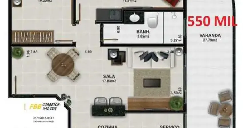 - Cômodos: Área de Serviço, Varanda, Cozinha em conceito aberto,