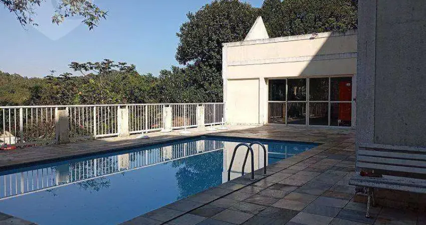 Condomínio com piscina, sauna, churrasqueira, quadra poliesportiva, brinquedoteca e salão de festas.