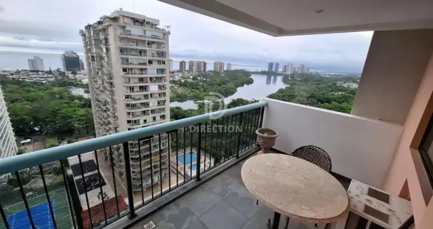Parque das Rosas, condomínio Casablanca. Maravilhoso apartamento 100% mobiliado em andar alto, vista frontal para o mar no coração da Barra da Tijuca. São 84m² com sala ampliada em 2 ambientes, linda varanda com vista 180 graus, 2 quartos (sendo 1 suíte com closet), banheiro social e cozinha planejada com área de serviço. Planta original de 2 quartos com dependências, que foram revertidas para ampliação da sala. Armários na casa toda. 1 vaga de garagem e vaga de visitante. Condomínio com lazer super completo, ônibus, balsa e portaria com segurança 24 horas. Direction Imóveis. a71ba
