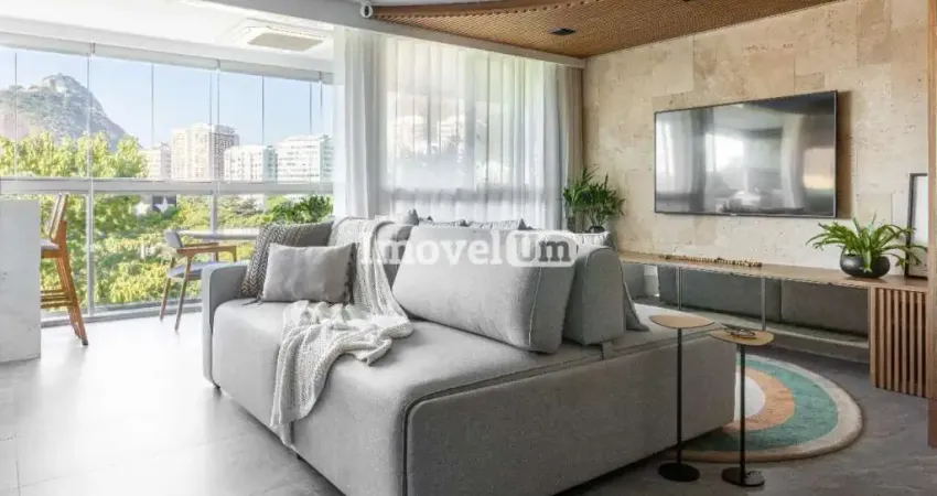 Magnífico apartamento com 110m², TOTALMENTE REFORMADO, VISTA DESLUMBRANTE PARA O PÃO DE AÇÚCAR, INDEVASSÁVEL, CLARO E AREJADO, originalmente de 3 quartos revertidos para 2, ambos suítes, closet exclusivo para roupas e sapatos, 1 lavabo, sala ampla proporcionando vários ambientes, varandão, todos os ambientes climatizados com ar condicionado, inclusive na varanda, acabamentos e marcenaria planejada Todeschini, cozinha com armários planejados, área de serviço e 2 vagas de garagem na escritura.