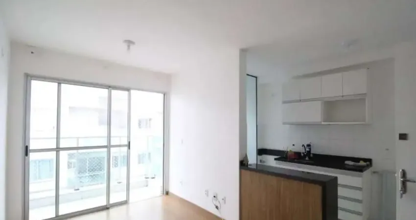 Apartamento com 2 quartos, sala para dois ambinetes, banheiro social, cozinha, área de serviço e varanda.