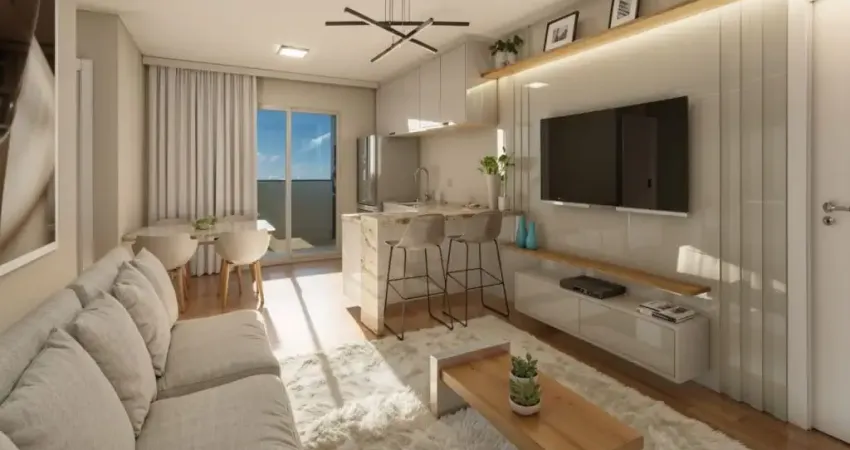 Apartamento de 2 dormitórios com sacada e churrasqueira e condomínio com infraestrutura completa
