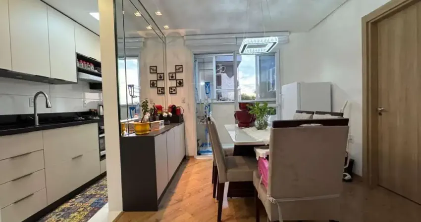 Apartamento semimobiliado no Bairro Colina Sorriso, com 63m² de área privativa. Imóvel com 02 dormitórios, sendo 01 suíte, sala de estar e jantar integrados, cozinha com churrasqueira, sacada com vista para pôr do sol, área de serviço, banheiro social, 02 vagas de garagem. Possui espera de água quente. Posição solar: leste/oeste. Prédio com elevador e salão de festas. Local calmo e tranquilo, rua sem saída. Agende sua visita.