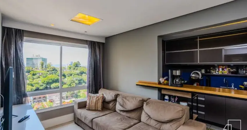 Conta com sala de estar com linda vista, cozinha mobiliada e excelente aproveitamento dos espaços. O imóvel permanece conforme as fotos, saindo apenas itens pessoais.