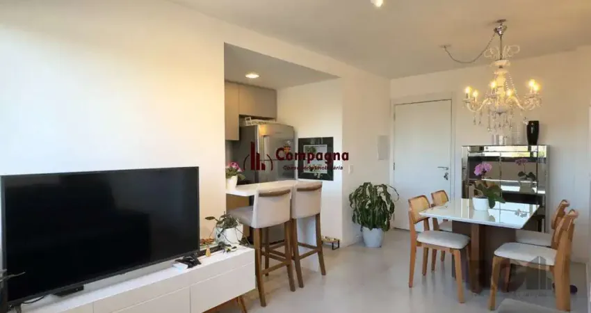 Apartamento semimobilaido de 60m², com planta original de 2 dormitórios com suíte transformado em 1 suíte com living estendido (fácil reversão), cozinha americana, churrasqueira, área de serviço integrada, banheiro social e 1 vaga de garagem. Imóvel com marcenaria sob medida, aparelhos de ar condicionado no living e dormitório, orientação solar Norte e vista definida.